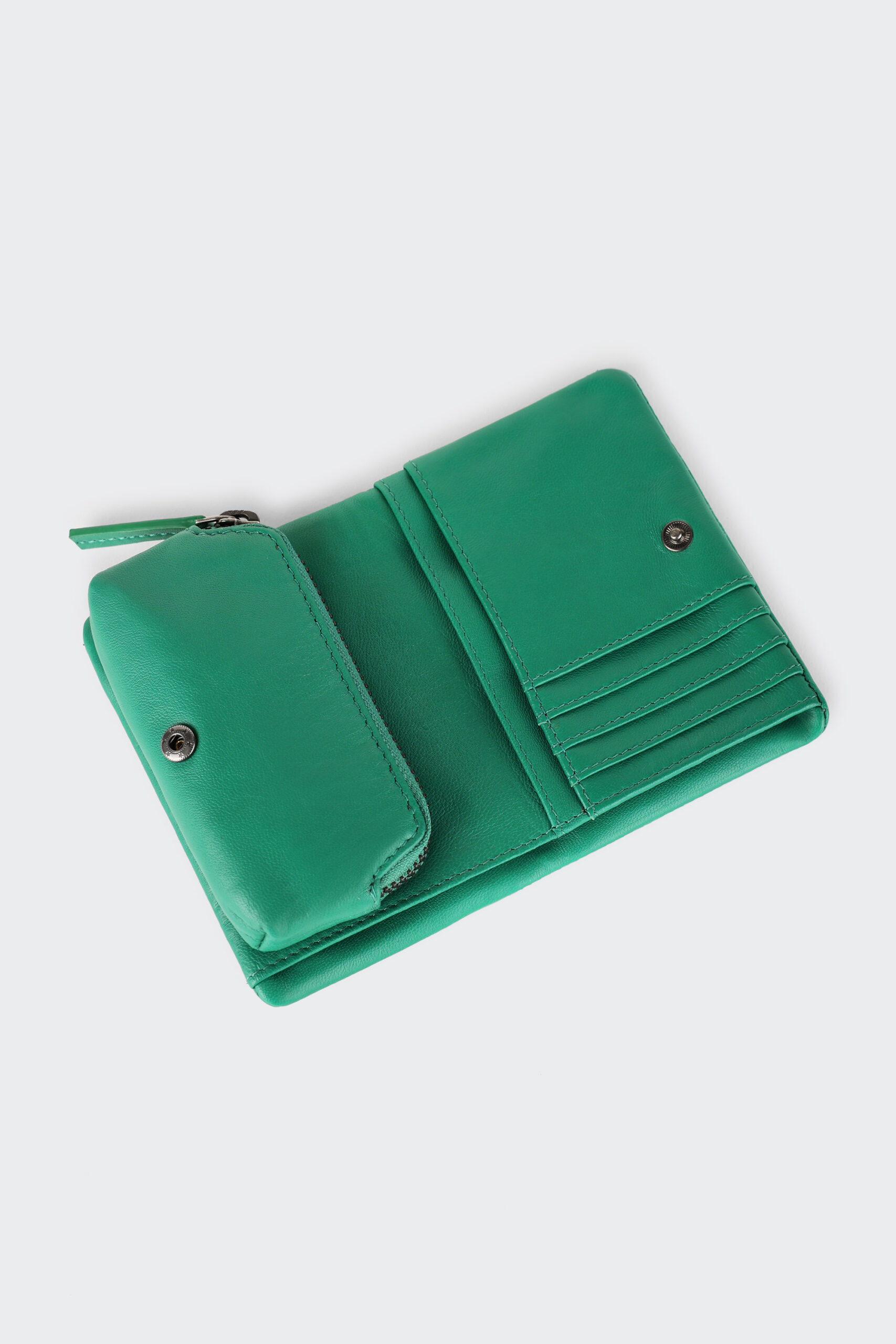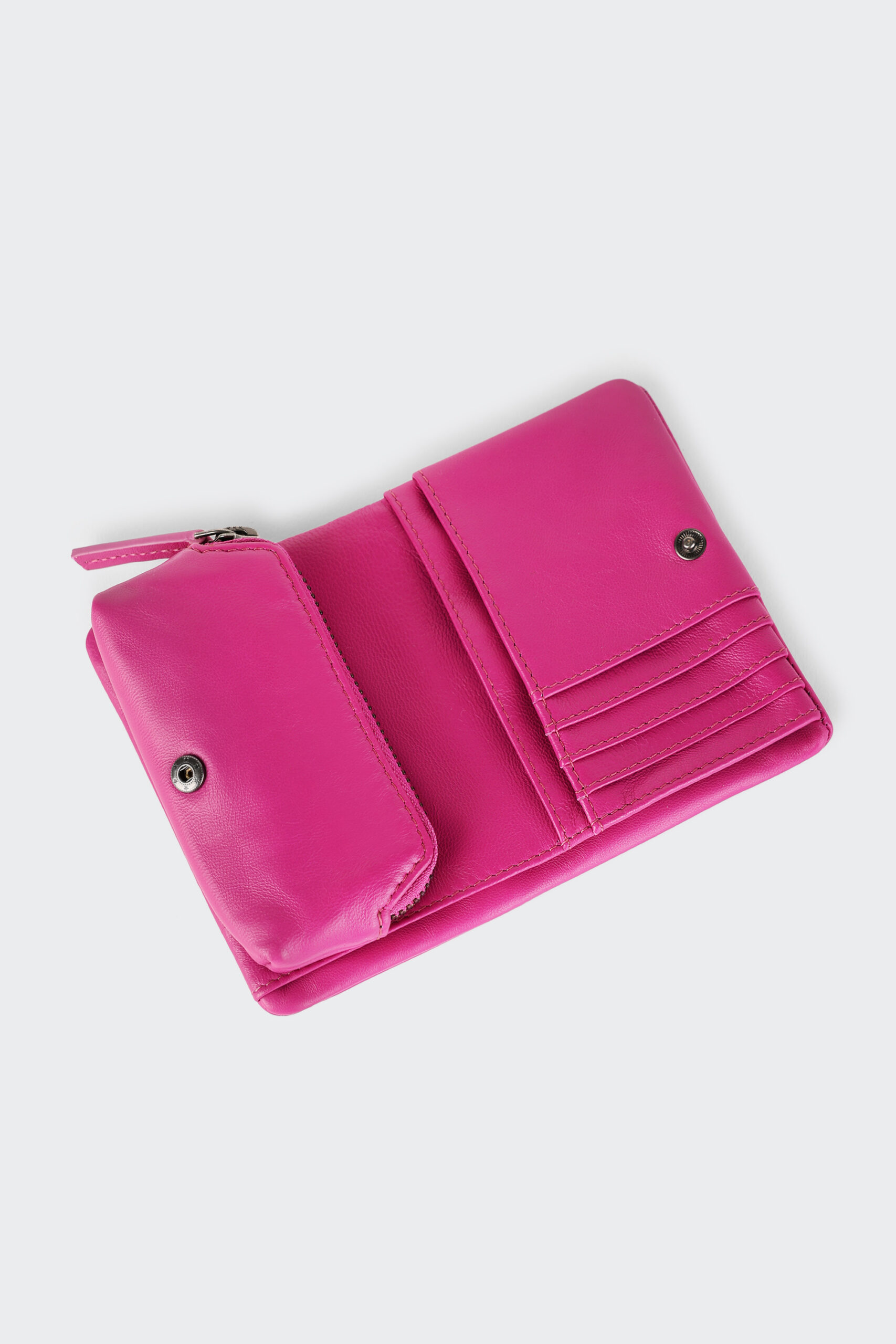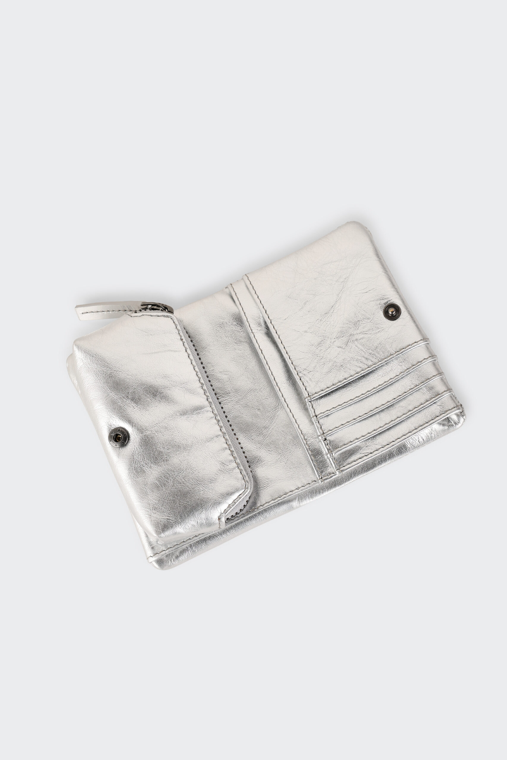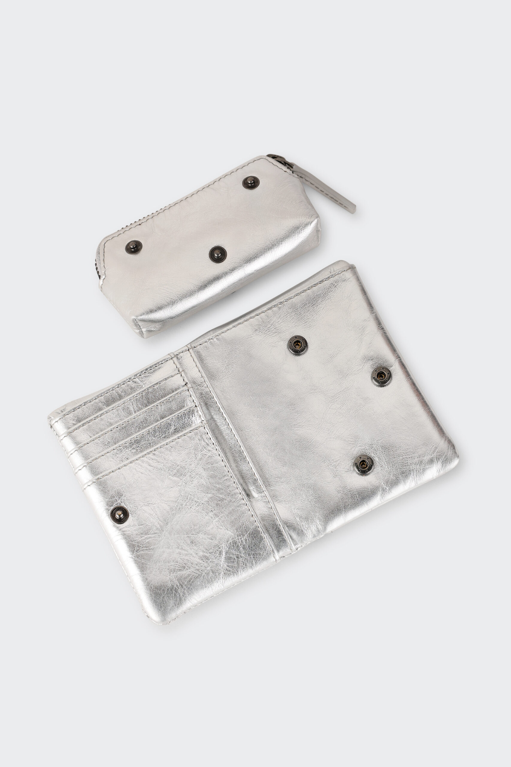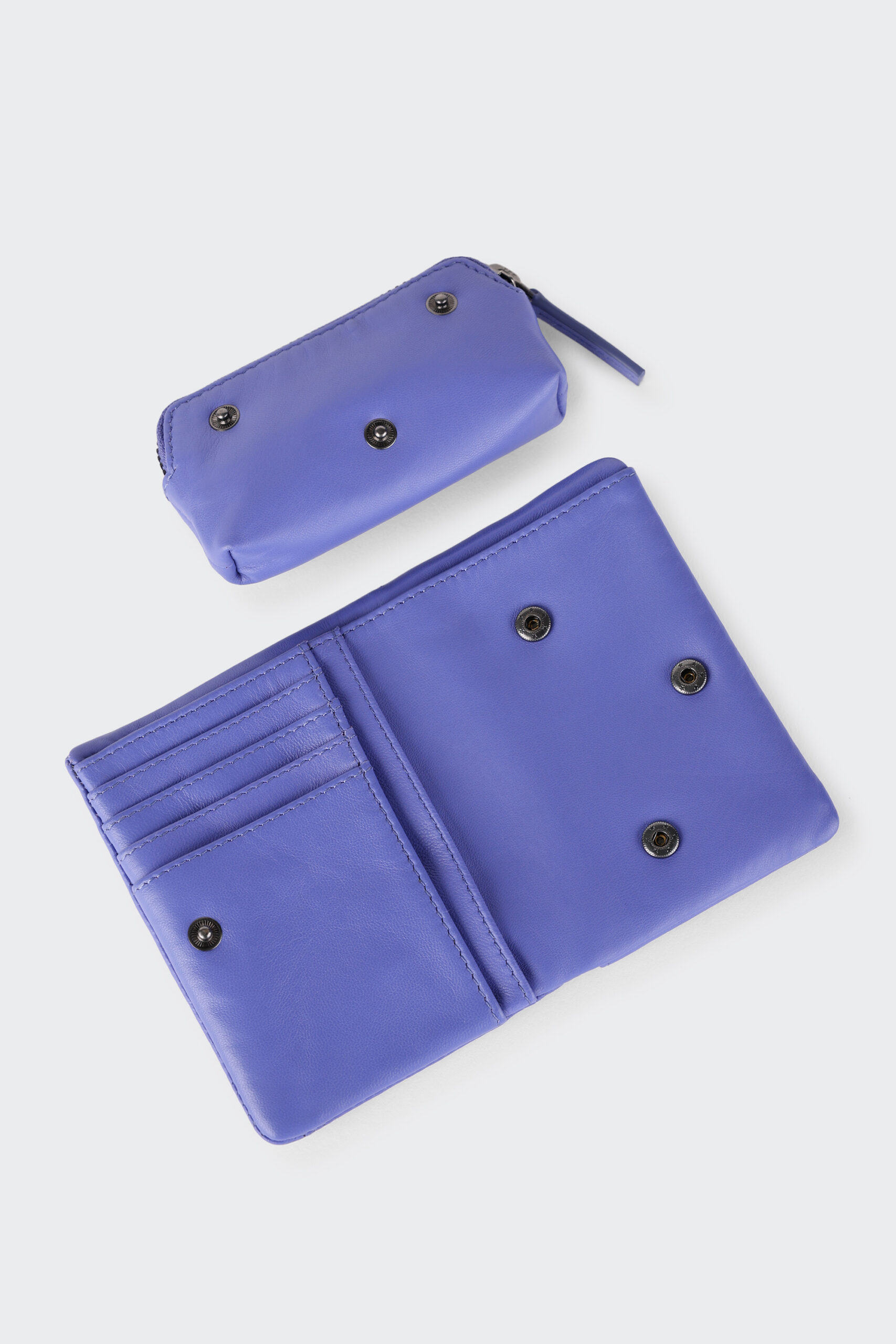 Le porte-monnaie est zippé et s’attache avec des boutons de pression.